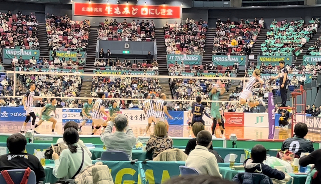 今回は、邑南町に訪問して、バレーボールの楽しさや面白さを教えてくださった清水選手に恩返しをするために、1月6日に行われたパナソニックパンサーズの試合の応援に行ってきました!対戦相手は強豪JTサンダーズ広島です!