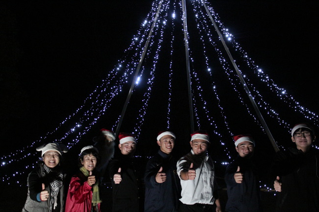 点灯式では、香木の森チーム5名がサンタクロースの格好に紛して、クリスマスにちなんだ曲などを披露。