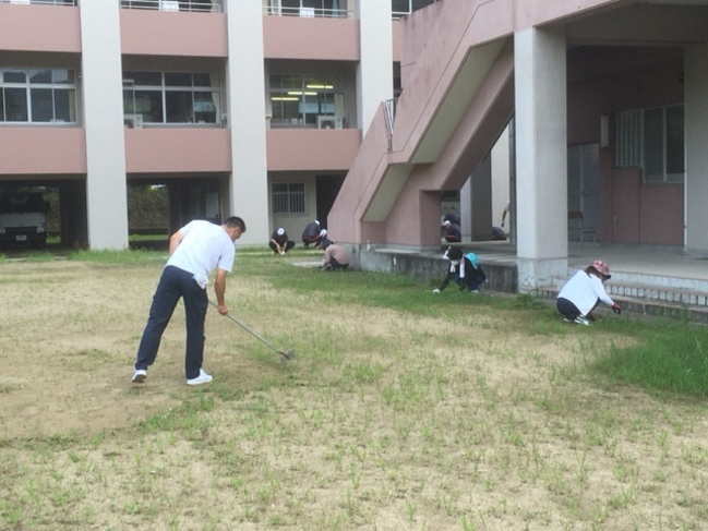 当日は38名の保護者の皆様方に参加していただき、生徒・教職員をあわせて合計93名で校地内の除草作業を行いました。