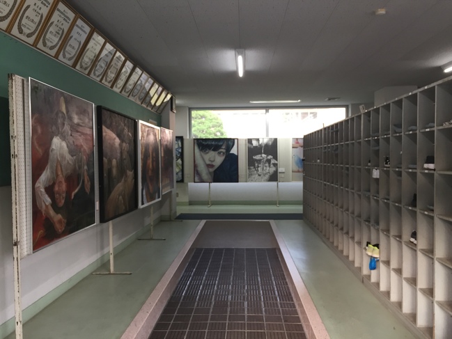 今回、初めての企画として宍道高校を会場に、定時制、通信制高校での展示をさせていただくことができました。美術部顧問の先生や美術部員さんの協力により多目的ホールでの展示が実現しました。
